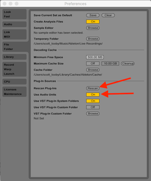2. Click on the "File Folder" tab and then set "Use Audio Units" to "On." Your Preferences screen should match this screenshot exactly: