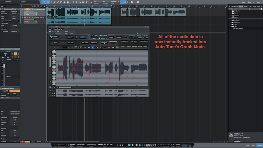 Auto-Tune Pro will now open up with the audio data automatically tracked into Graph Mode: