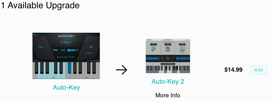 Note: Users who previously received Auto-Key bundled with their Auto-Tune Pro must contact support to redeem their upgrade offer.
