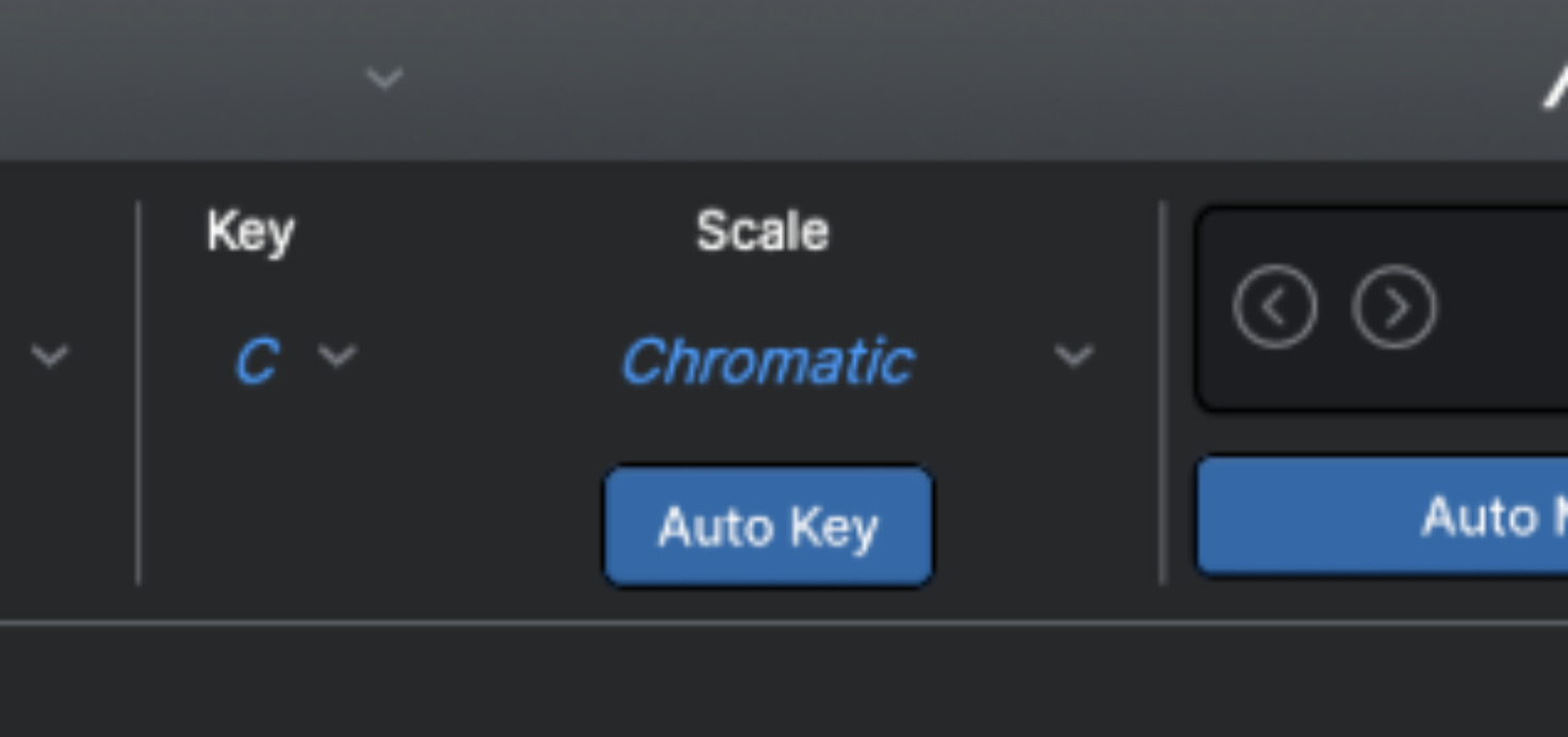Settings recall issues are often accompanied by the defaulted Key and Scale fields showing in italics, pictured below: