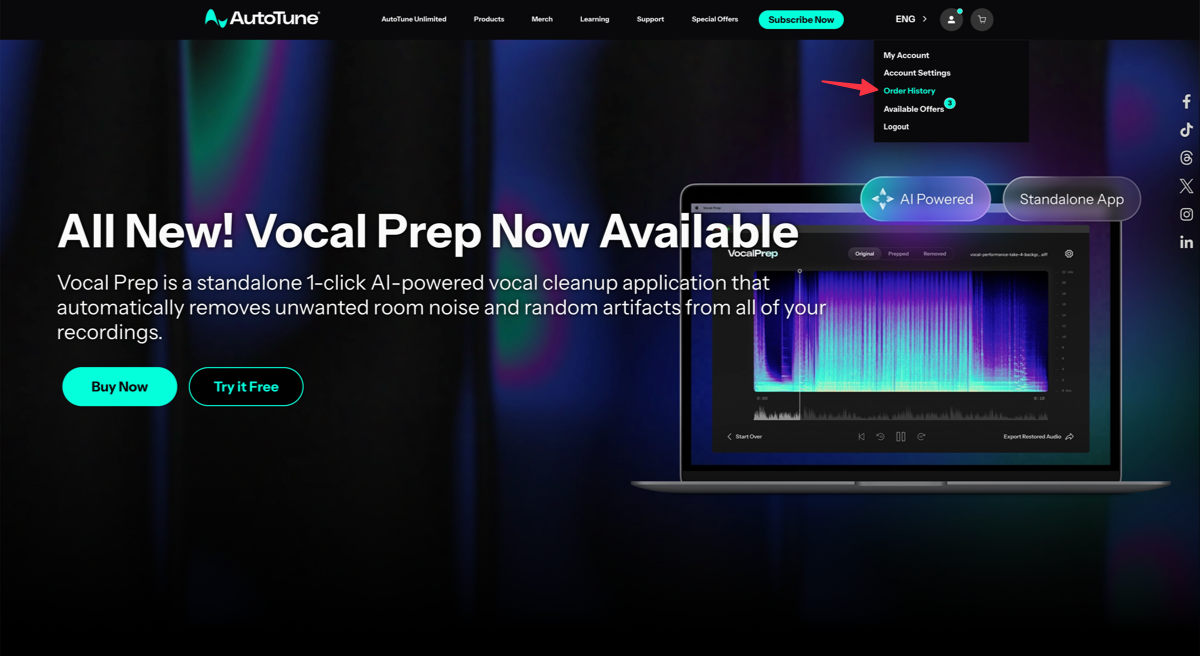 - Click Order History from the dropdown menu